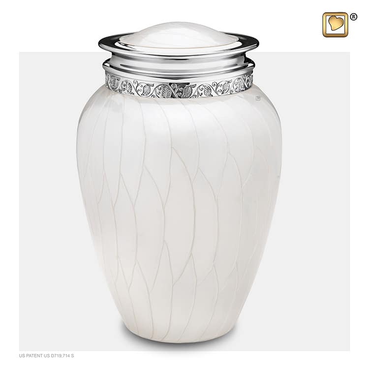Deze urn is een stijlvolle en serene herinnering aan een dierbare,